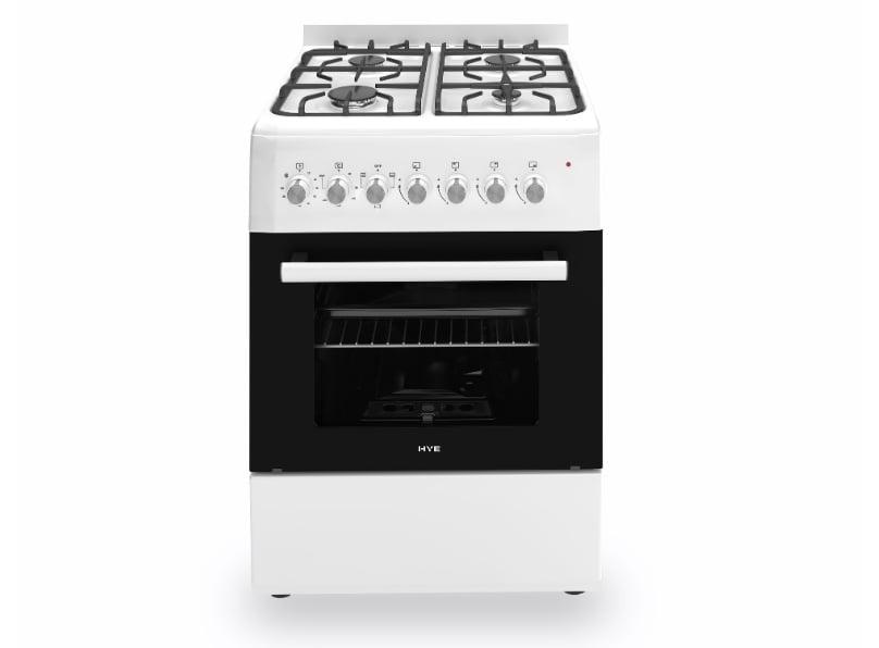 HYE Cooker - Gas Cooker With 4 Gas Burners, 62L Electric Oven, 60cm Width, Modern Freestanding Design, White, Ideal For Family Homes - C01FS60G17W