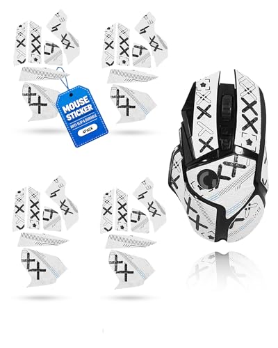 toergy 4 Set Mouse Anti-slip Grip Tape Fit for Logitech G502, Sweat Resistant,Easy to Use,Self-Adhesive Design,Elastics Refined Side Stickers,Professional Mice Upgrade Kit,White Printed Pattern