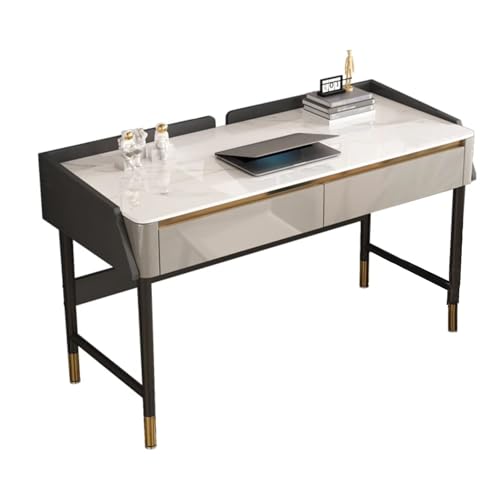ZKBDBWTR Luxury Computer Desk with 2 Drawers, White Rock Board Gaming Desk, Writing Study Table for Bedroom Home Office(120cm/47.2in)
