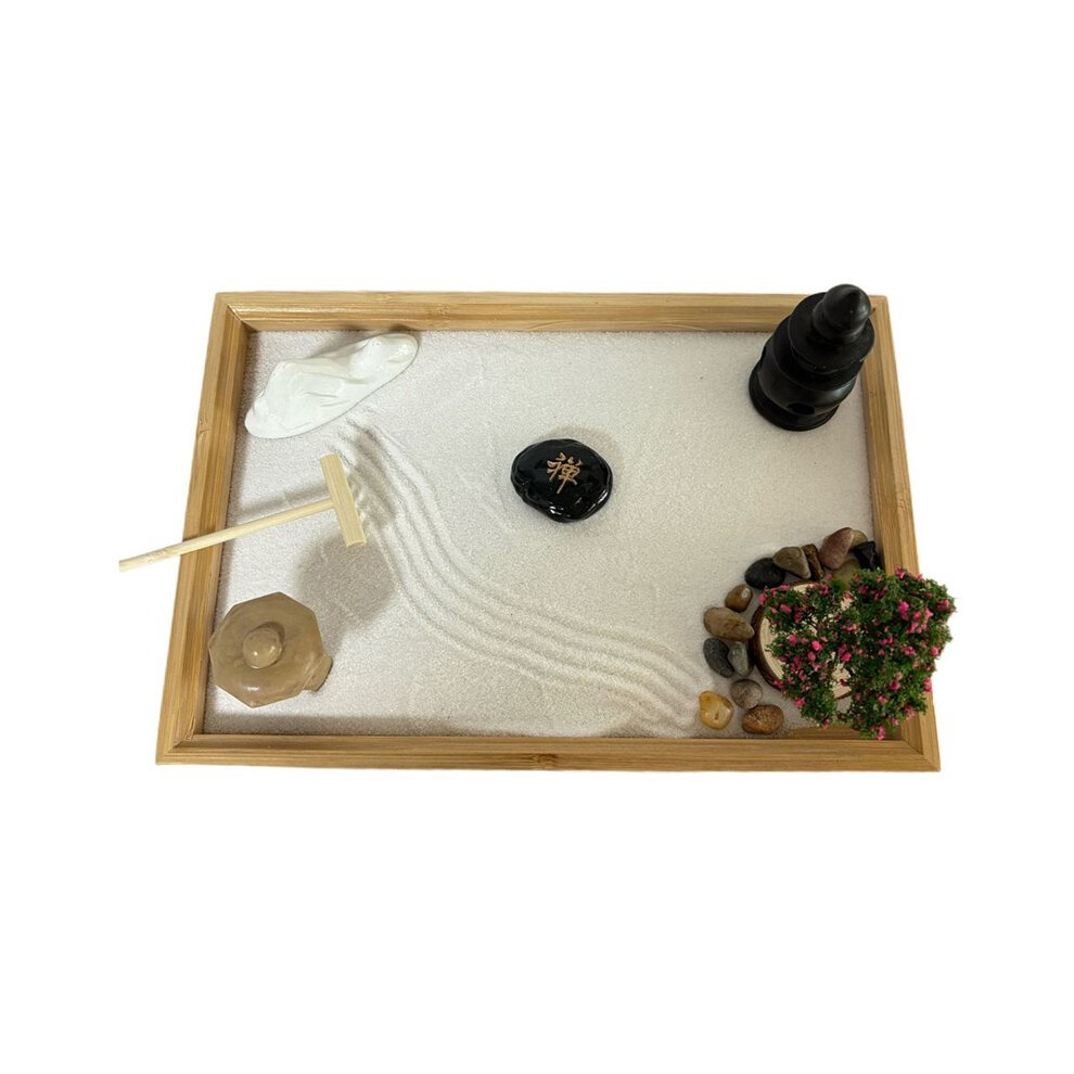 Mini Zen Sand Garden Kit for Desk â 6x4" Tray, White Sand, River Rocks, Rake Tools â Office Table Accessory & Meditation Gift