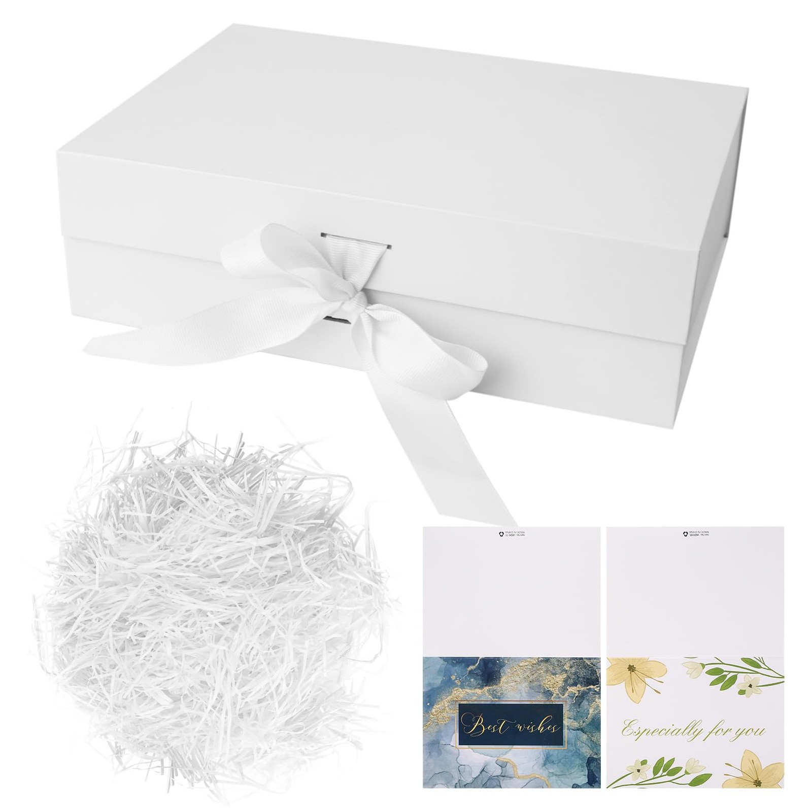 White Gift Box 22X16X8 Cm,Gift Boxes with Lids Greeting Cards and Shredded Paper