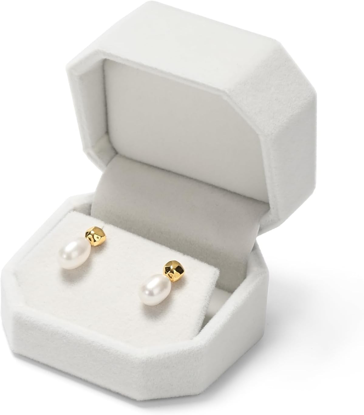 Velvet Earring Box Small White Octagonal Earring Gift Box for Anniversaries Bir
