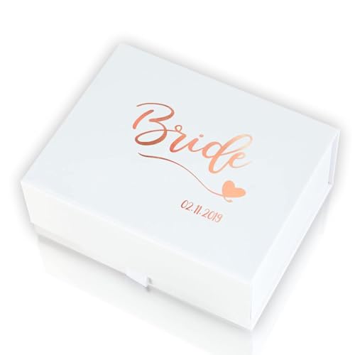 Pink Positive Bride Gift Box Personalised with Wedding Date | White Magnetic Gift Box