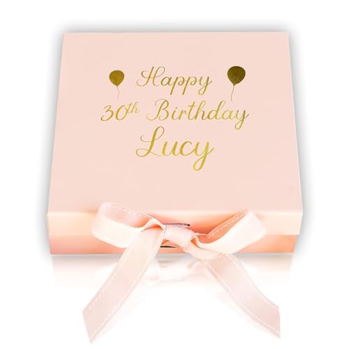 Pink Positive Personalised Birthday Gift Box with Name - Custom Pink Gift Box - Happy Birthday Box for Luxury Personalised Gifts - White Gift Box with Any Name, Foiled