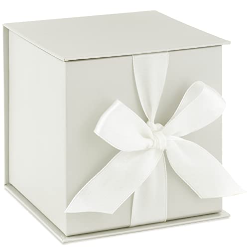 Hallmark Small Gift Box with Bow and Shredded Paper Fill (Cream White 4 inch Gift Box) for Weddings, Bridal Showers, Graduations, Birthdays, Bridesmaids Gifts, All Occasion
