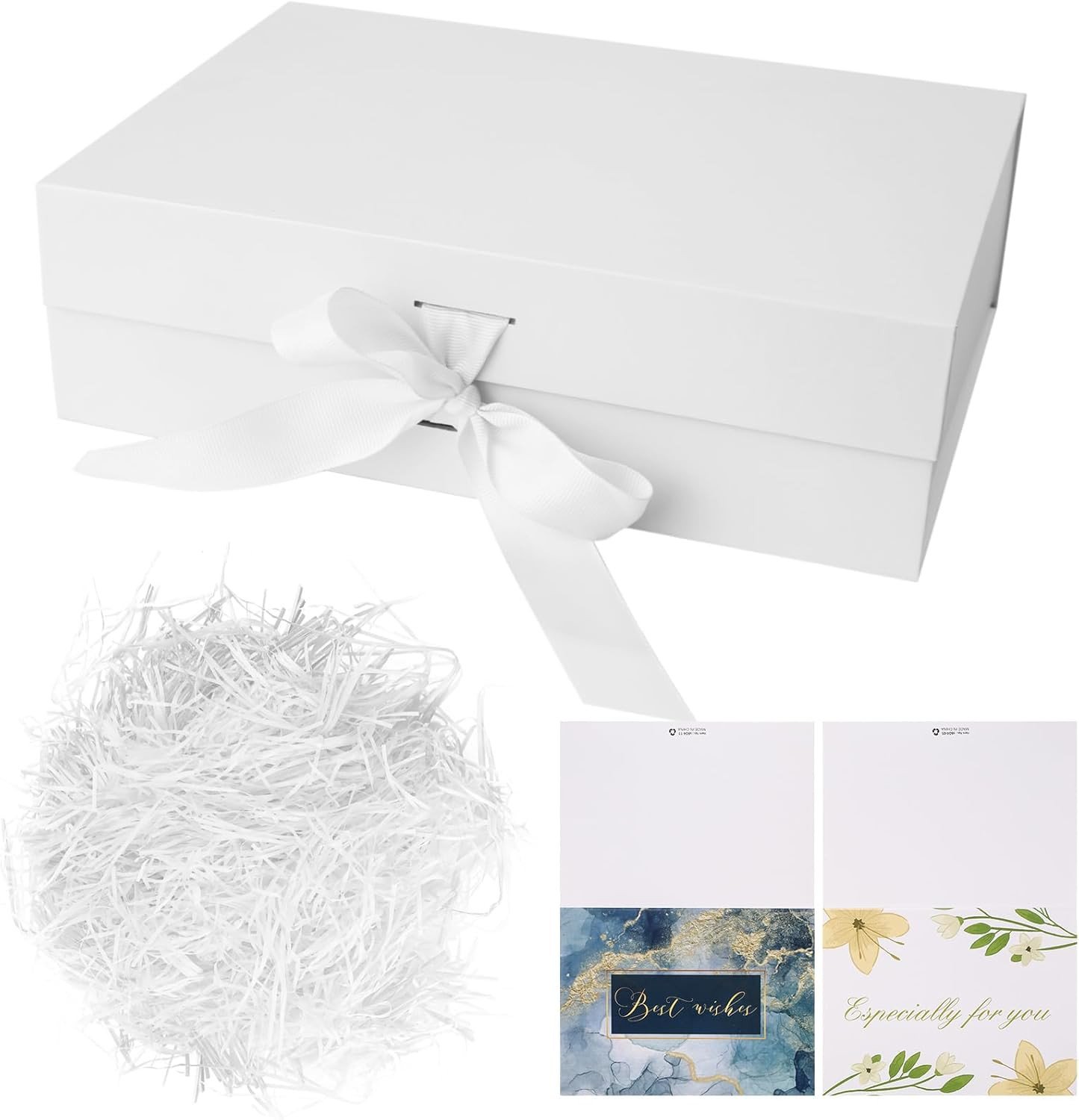 White Gift Box, 23.5 x17 x10 cm Gift Box with Magnetic Lids and Silk Ribbon Specially Designed for Present Birthdays, Holidays, Anniversaries Gift Packaging