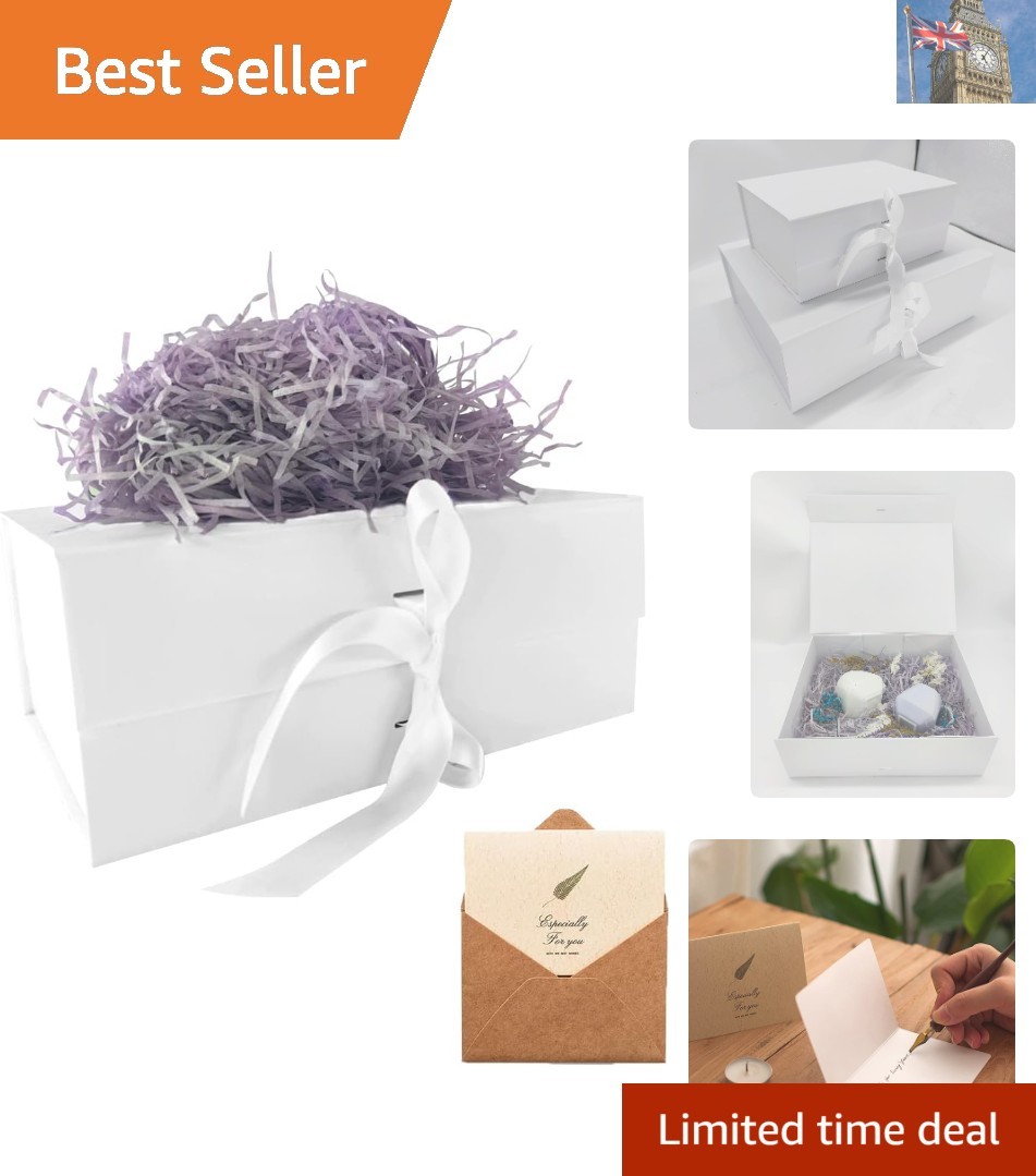 Space-Saving White Gift Box, 23.5x17x10 cm with Silk Ribbon for Special Gifts
