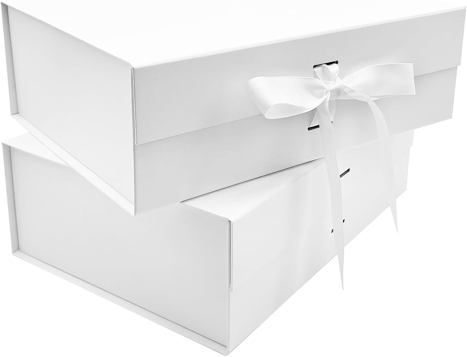 WAIZHIUA 2Pcs Luxury Magnetic Gift Box with Ribbon, Extra Large White Gift Box
