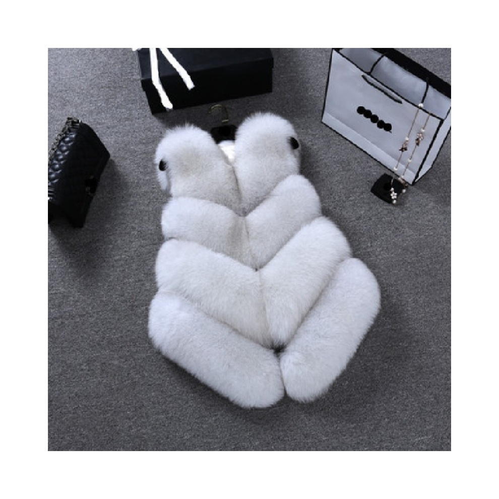 (White, 4XL) Womens Fur Faux Waistcoat Gilet Winter Warmer Vest Jacket Coat Outwear Size Plus