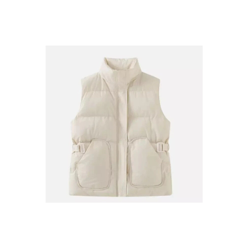 (Cream White, UK M =Tag Size XL) Womens Winter Zip up Vest Jacket Body Warmer Padded Quilted Lady Gilet Waistcoat