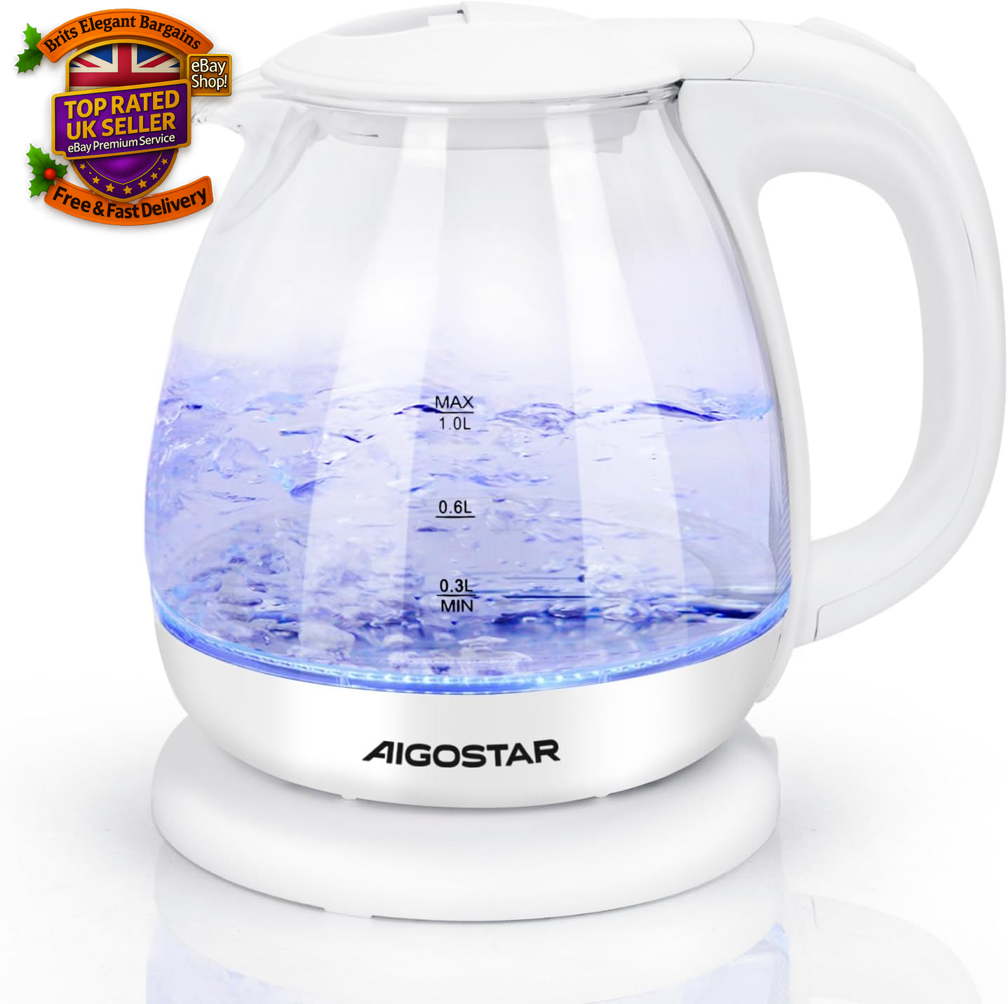 Aigostar Small Electric Kettle, 1.0L White Glass Kettle Cordless, Compact Mini Clear Water Tea Kettle Fast Quiet Boil for Kitchen Bedroom Office, 2200W - Elvin 3011Q