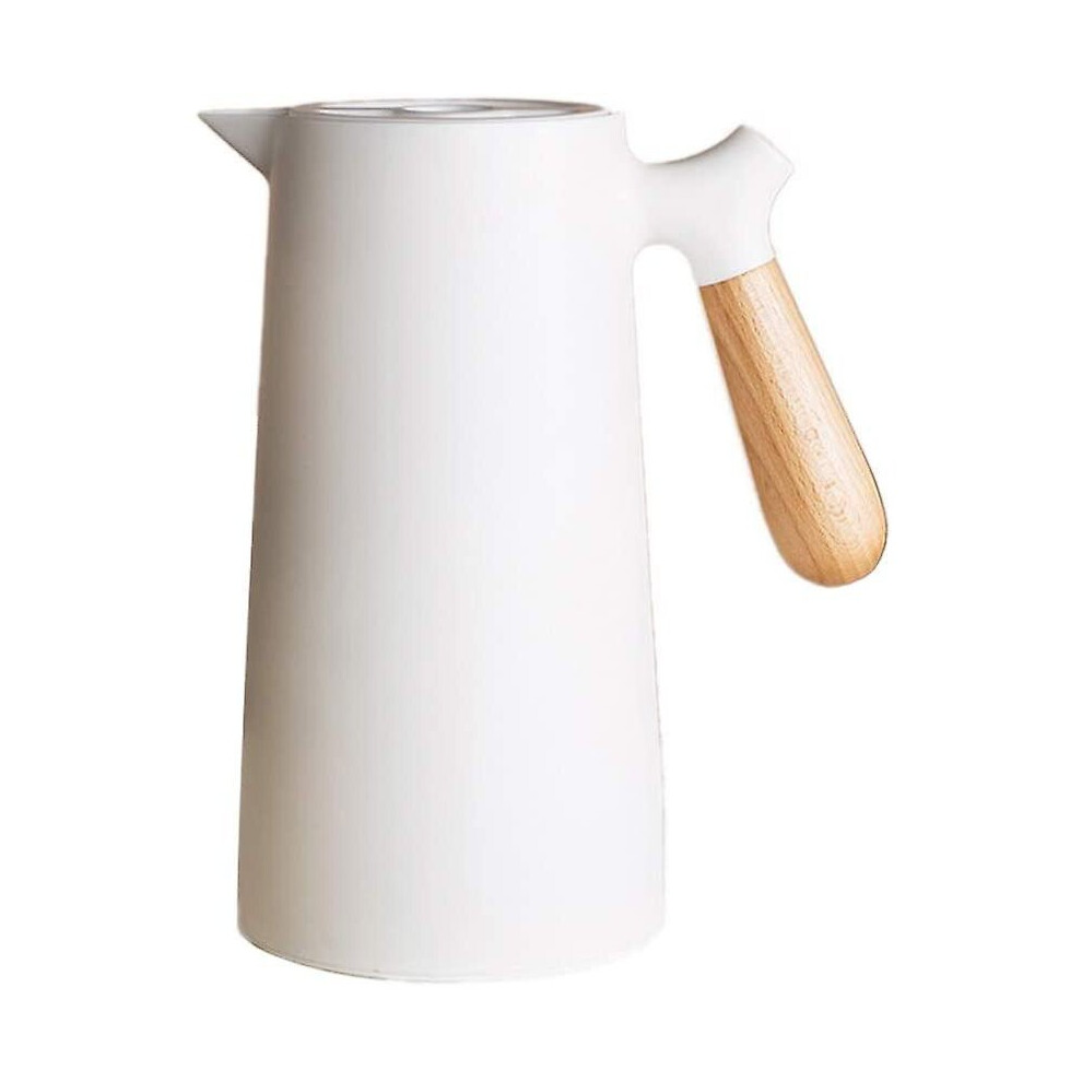 (White) Thermos Pot Double Layer Thermal Insulation Kettle Glass Liner Coffee Pot With Wood Handle 1000ml