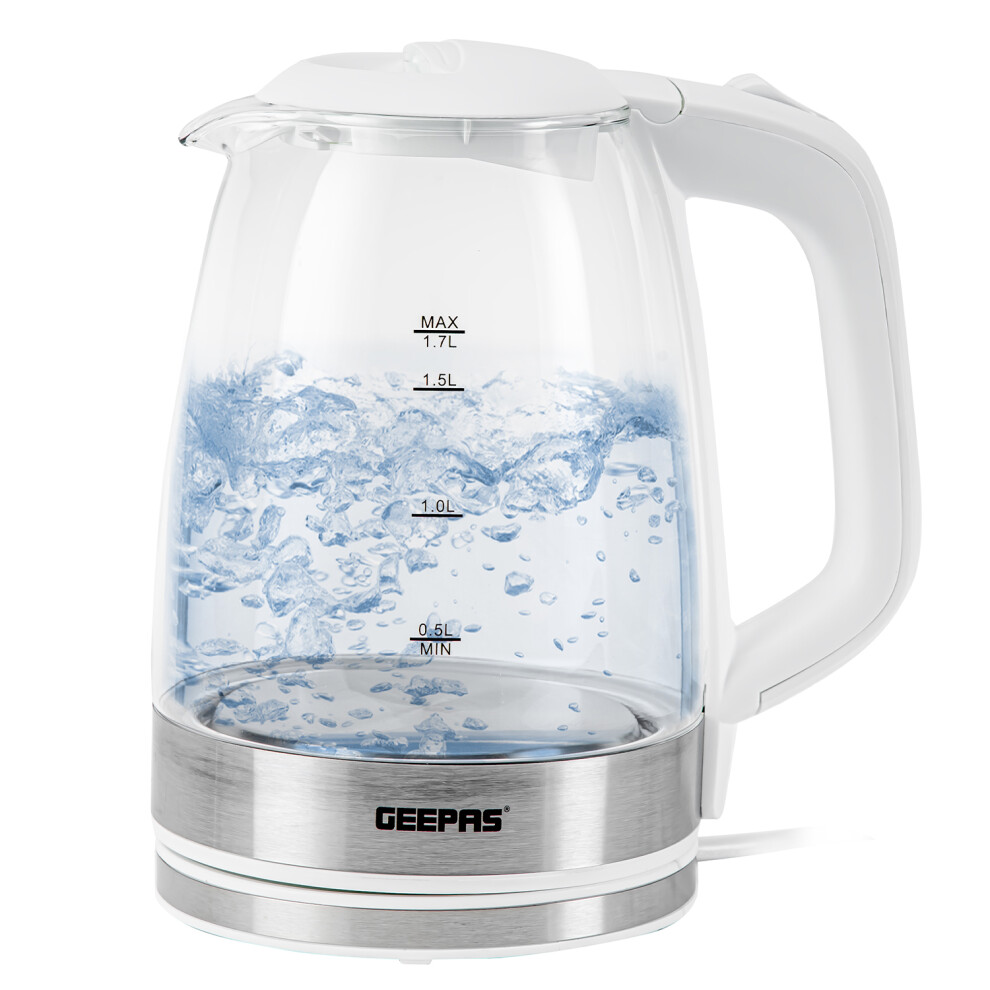 (White) Geepas 1.7L Electric Illuminating Glass Kettle