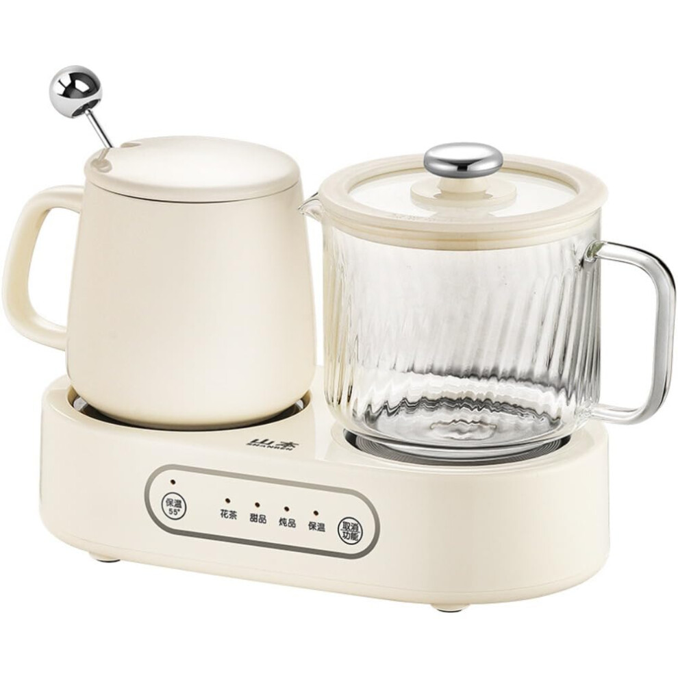 MAMAO Smart Electric Heating Cup Office Tea Making Multifunctional Health Pot Silent Mini Health Cup Kettle Fully Automatic Electric Cooking Pot Thickened Glass Insulation Flower Teapot White