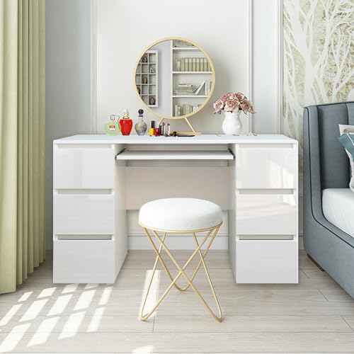 UMAIL High Gloss White Dressing Table with 6 Drawers Home Office Computer Desk Study Table for Home Bedroom Office 120(L) x50(W) x70(H) cm