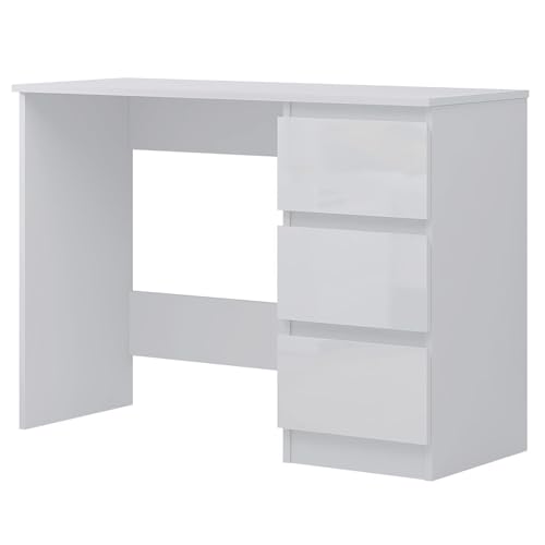 FWStyle Modern Matt Frame White Gloss 3 Drawers Dressing Table Home Office Desk Scandinavian Style