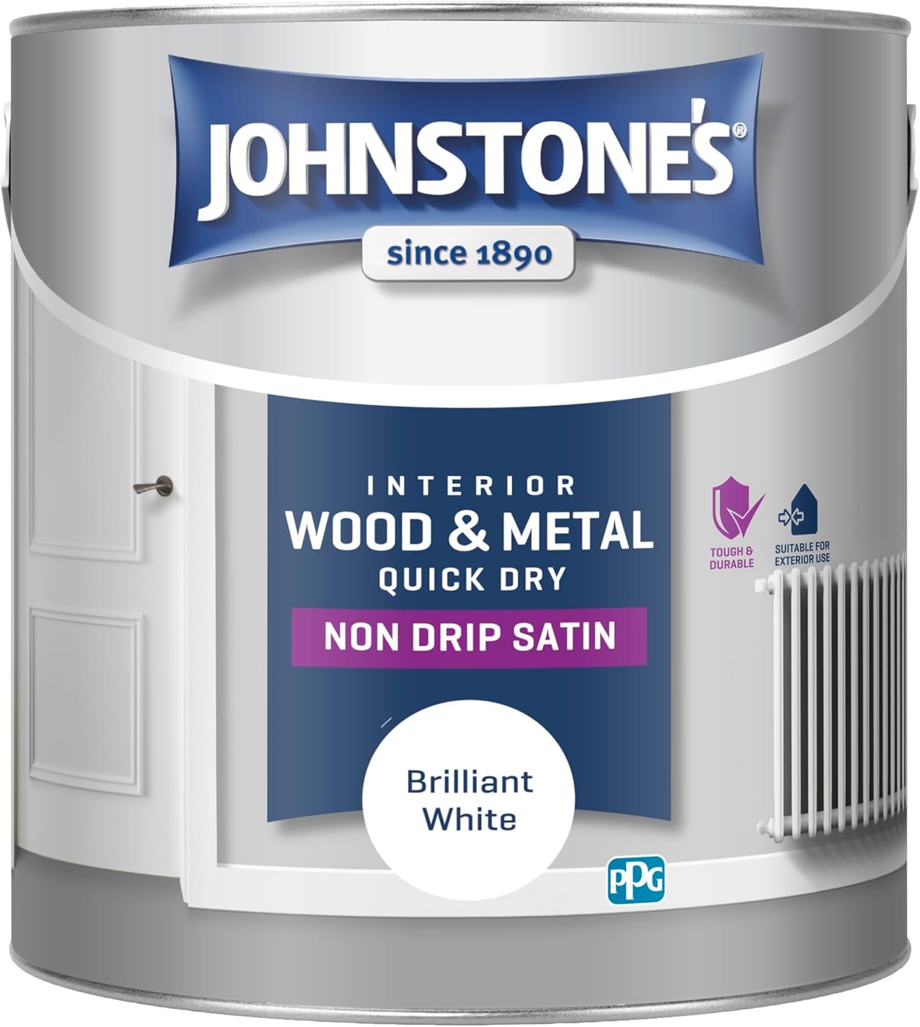 Johnstone's - Wood & Metal Paint - Satin 2.5 l (Pack of 1), Brilliant White