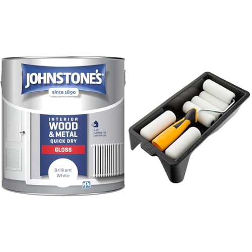 Johnstone's , Quick Dry Gloss, Brilliant White, Gloss Finish 25m2 Coverage per Litre, 2.5 L & Coral 43401 Easy Coater Paint Mini Roller Kit