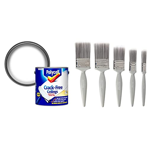 Polycell PLCCFCSM25L Crack-Free Ceilings Smooth Matt - 2.5 L, White and Harris Essentials Walls & Ceilings Paint Brush Set | Pack of 5 | 0.5", 1", 1.5", 2"