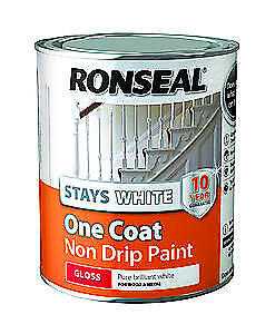 Ronseal RSLOCSWGP25L One Coat Stays Gloss Paint, White, 2.5 Litre