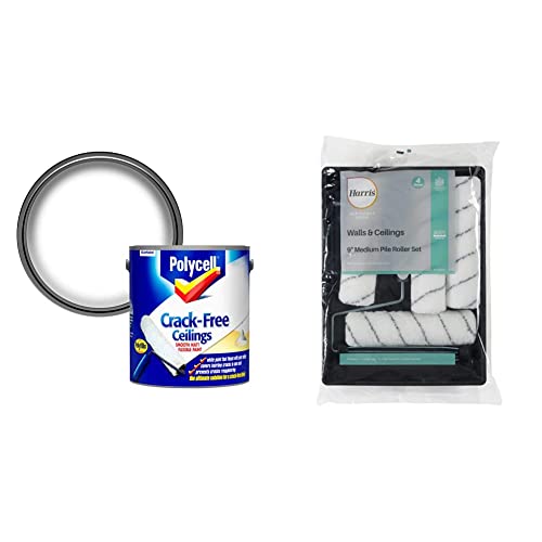 Polycell PLCCFCSM25L Crack-Free Ceilings Smooth Matt - 2.5 L, White & Harris 102012009 Seriously Good Walls & Ceilings Paint Roller Set 9in | Includes 1 x 9 Frame, 4 x 9 Medium | 9"