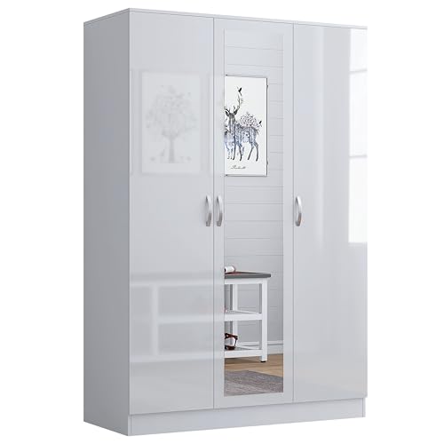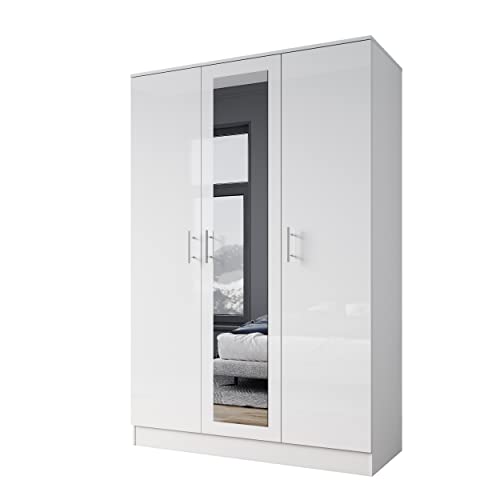 ELEGANT 3 Door Wardrobes with Hanging Rail and Storage Shelves Modern Large Clothes Cabinet for Bedroom Furniture, High Gloss White