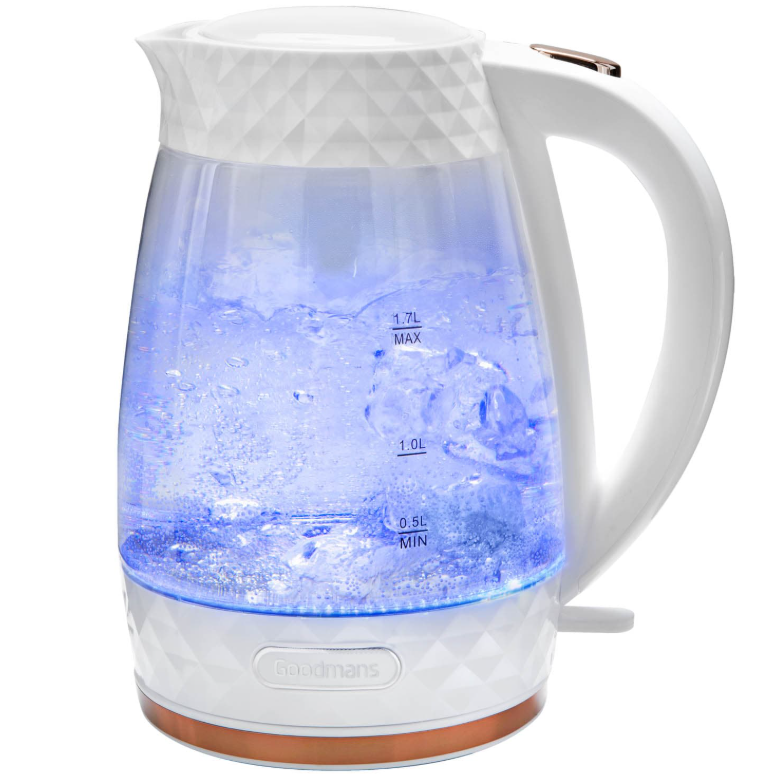 Goodmans Diamond Glass Kettle - White & Rose Gold