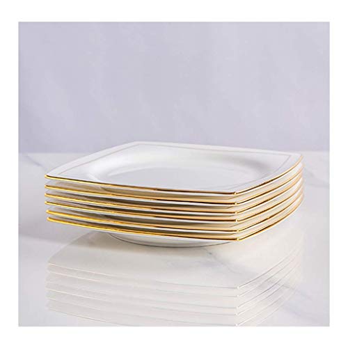 H3TF5J White Gold-rimmed Tableware Set, 20 Cm Ceramic Plate, Microwave And Dishwasher Safe, 4-person Porcelain Dinner Plate, Country Style Tableware (6pcs)