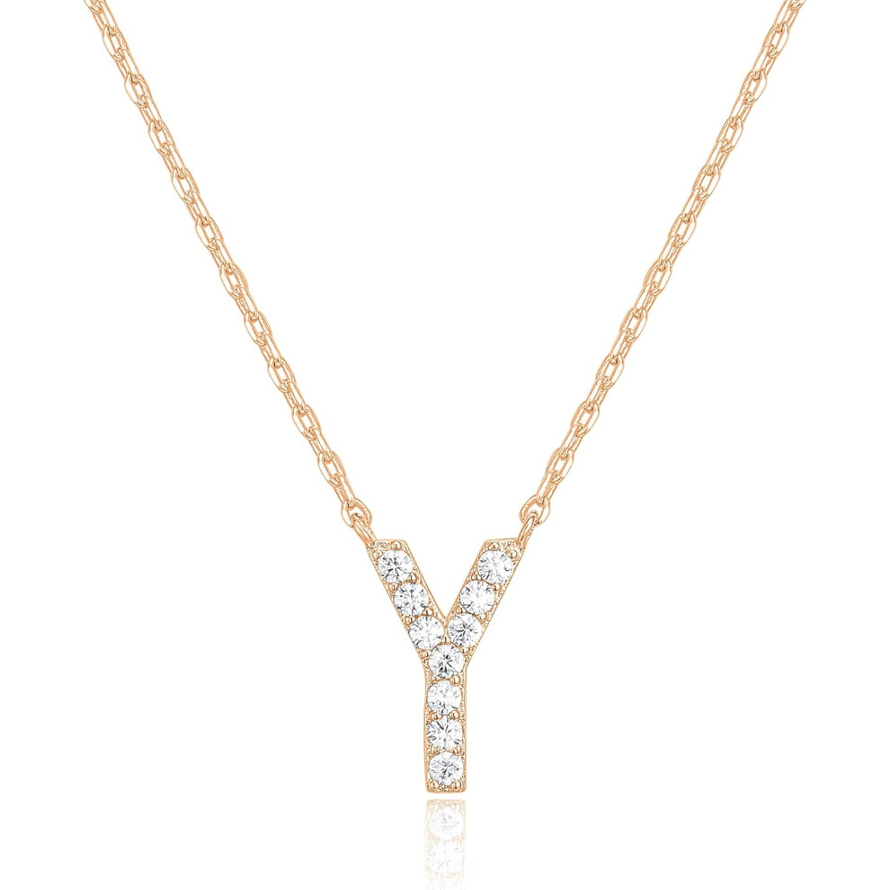 (Rose Gold, - Y) HKEDES 14K White Gold Plated Cubic Zirconia Initial Necklace | Letter Dainty Necklaces for Women