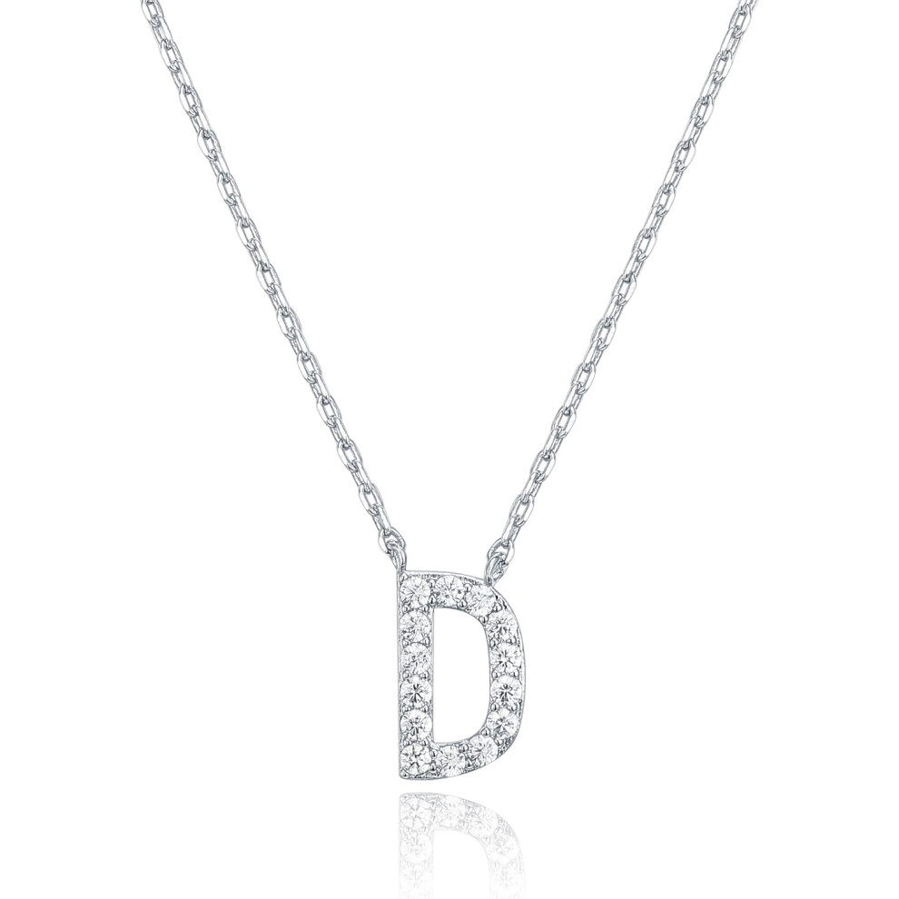 (White Gold, - D) HKEDES 14K White Gold Plated Cubic Zirconia Initial Necklace | Letter Dainty Necklaces for Women