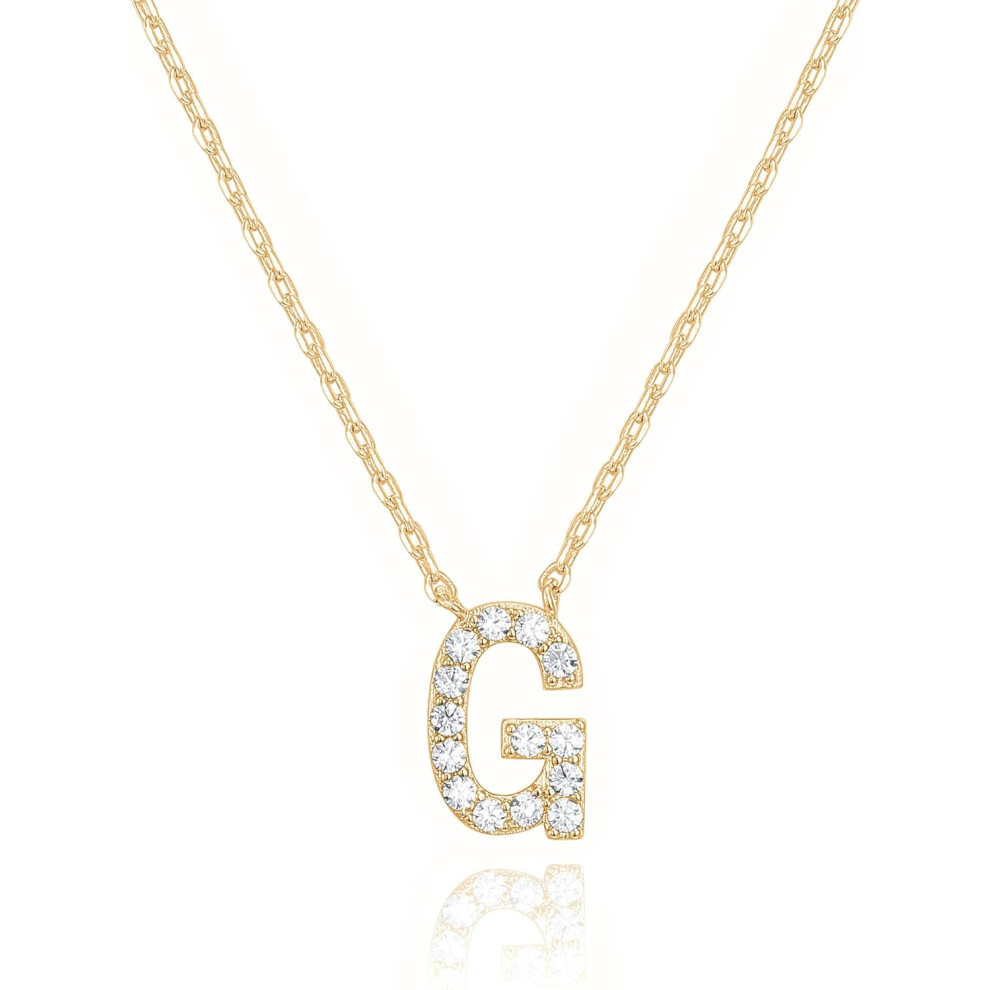 (Yellow Gold, - G) HKEDES 14K White Gold Plated Cubic Zirconia Initial Necklace | Letter Dainty Necklaces for Women