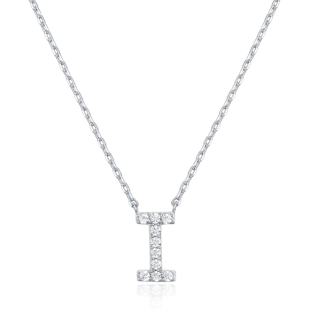 (White Gold, - I) HKEDES 14K White Gold Plated Cubic Zirconia Initial Necklace | Letter Dainty Necklaces for Women