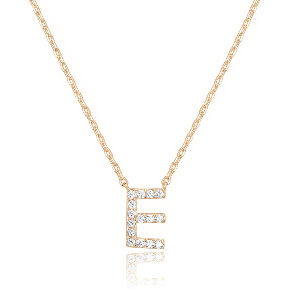 (Rose Gold, - E) HKEDES 14K White Gold Plated Cubic Zirconia Initial Necklace | Letter Dainty Necklaces for Women