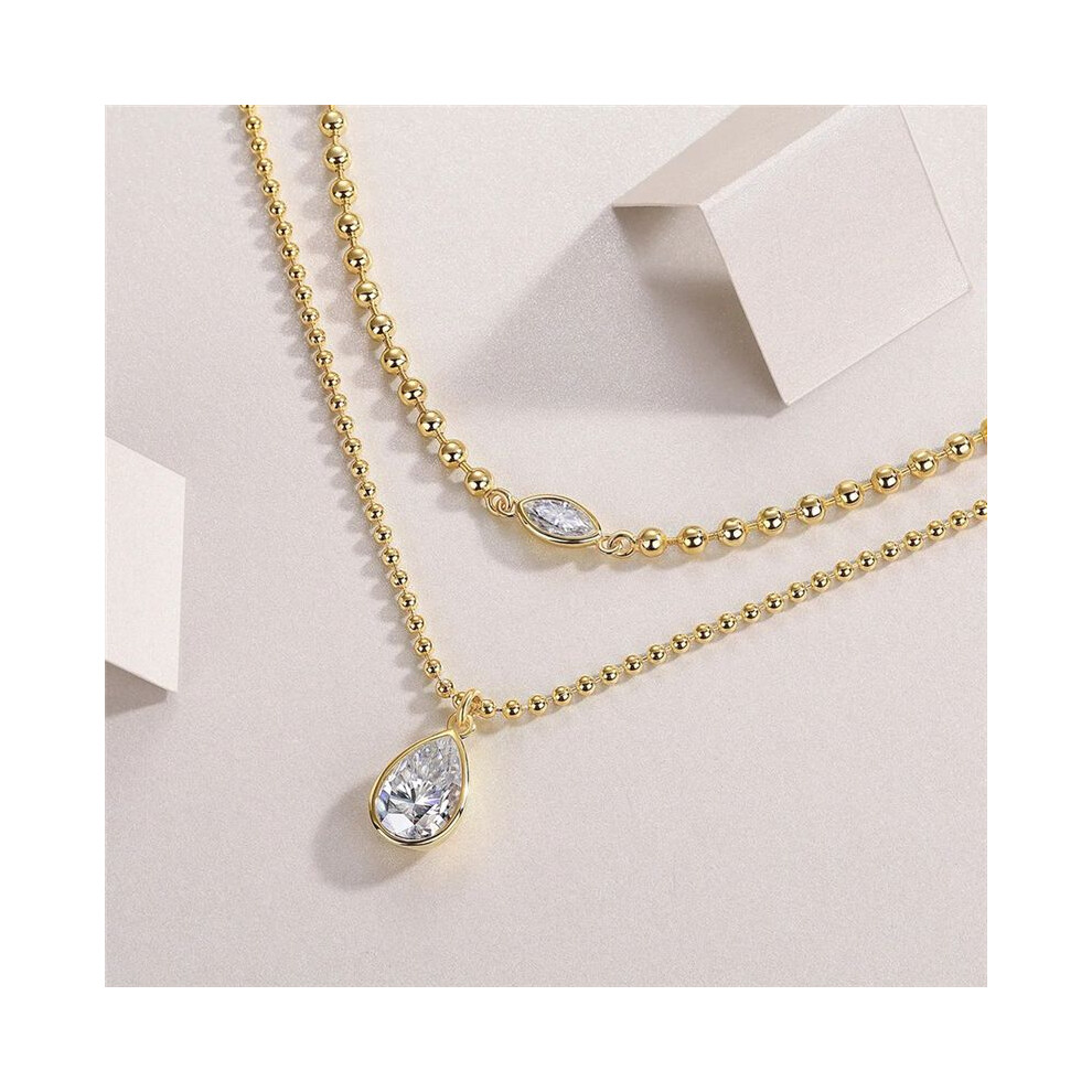 (White Gold) HKEDES 14K Gold Plated Dainty Pear Pendant Necklace for Women | Tear Pendant Necklaces