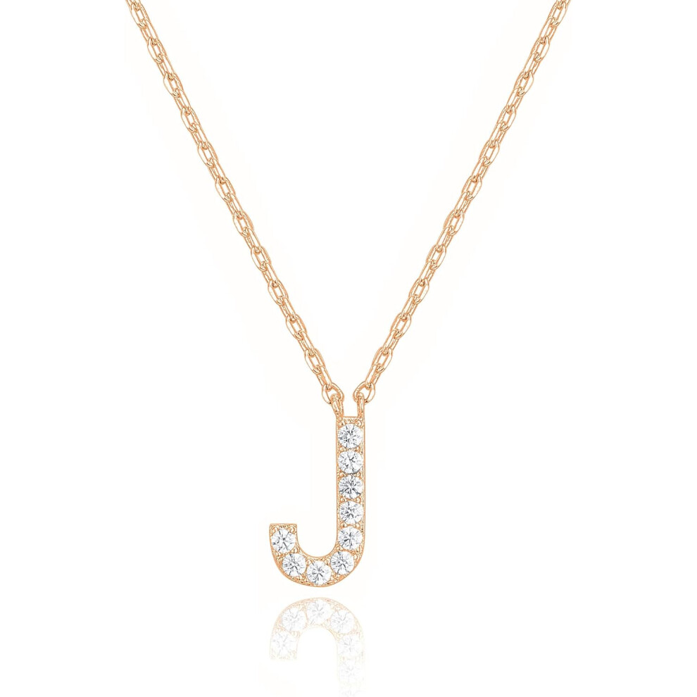 (Rose Gold, - J) HKEDES 14K White Gold Plated Cubic Zirconia Initial Necklace | Letter Dainty Necklaces for Women
