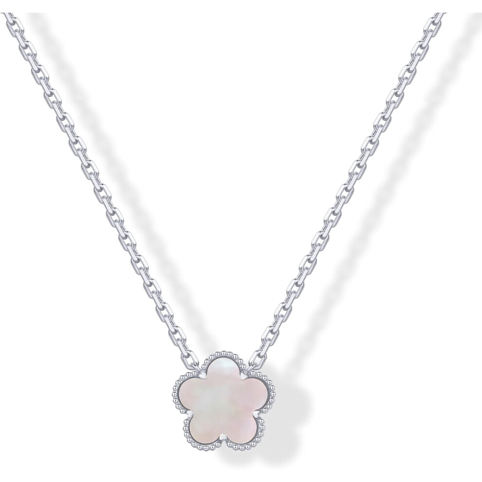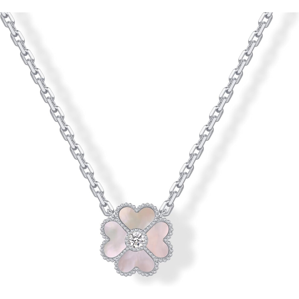 (White Gold, Mother of Pearl Flower) 14K Gold Plated Clover Necklaces for Women - Lucky Four Leaf Clover Necklace Pendant