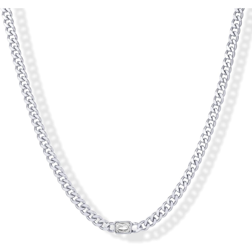 (White Gold, Princess) HKEDES 14K Gold Plated Station Necklace - Simulated Diamond Layering Necklaces - Womens CZ Chain