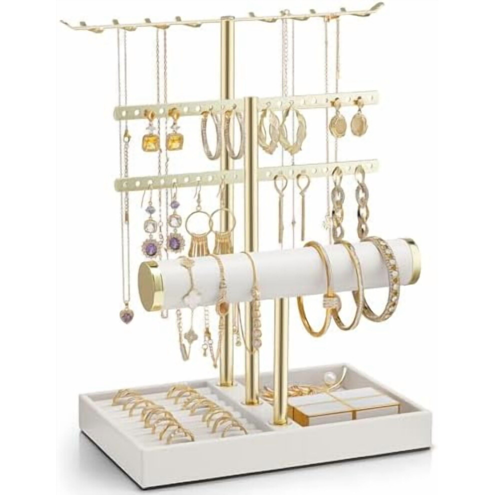 Gold Jewelry Stand Organizer for Necklaces, Earrings, Rings & Bracelets â Velvet Tree Hanger, White & Gold â Birthday/Mother's Day Gifts â