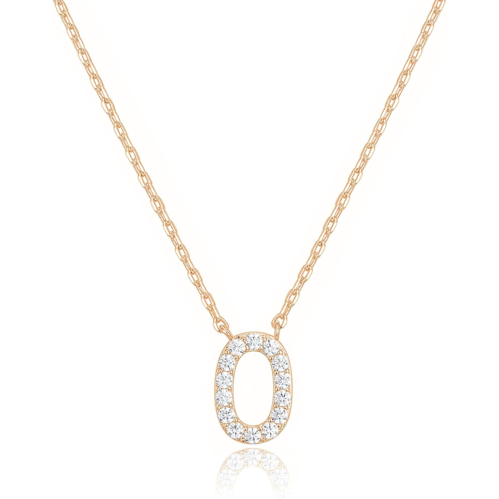 (Rose Gold, - O) HKEDES 14K White Gold Plated Cubic Zirconia Initial Necklace | Letter Dainty Necklaces for Women
