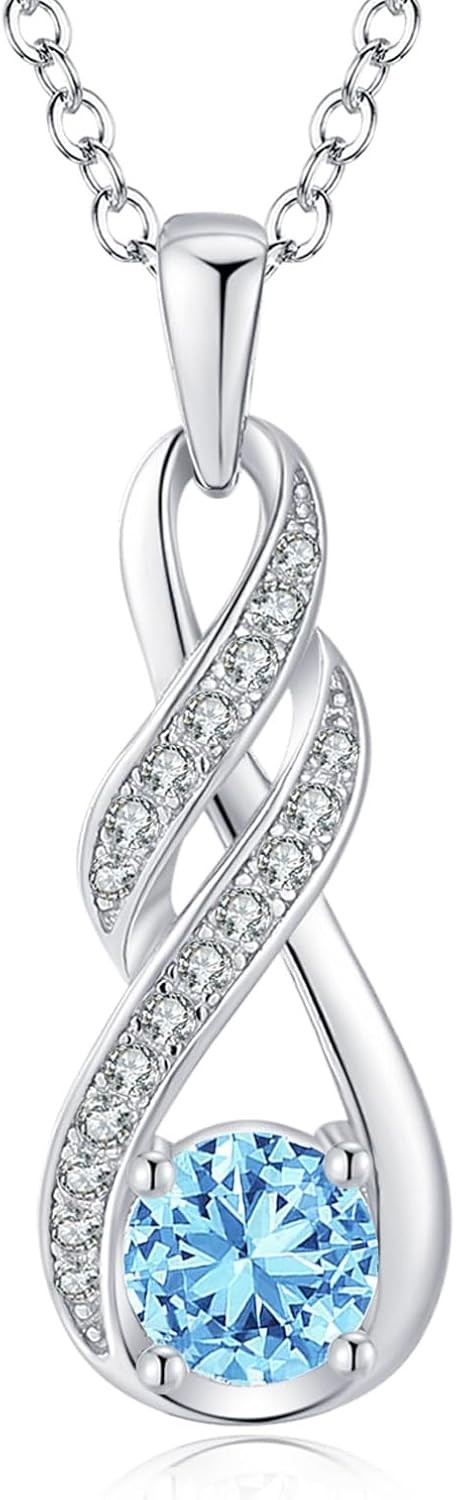 Necklaces for Women 925 Sterling Silver Infinity Pendant White Gold Birthstone