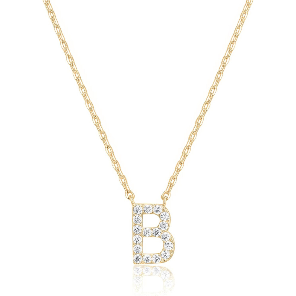 (Yellow Gold, - B) HKEDES 14K White Gold Plated Cubic Zirconia Initial Necklace | Letter Dainty Necklaces for Women