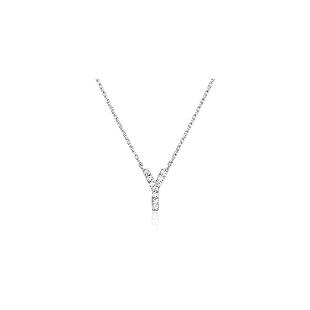 (White Gold, - Y) HKEDES 14K White Gold Plated Cubic Zirconia Initial Necklace | Letter Dainty Necklaces for Women