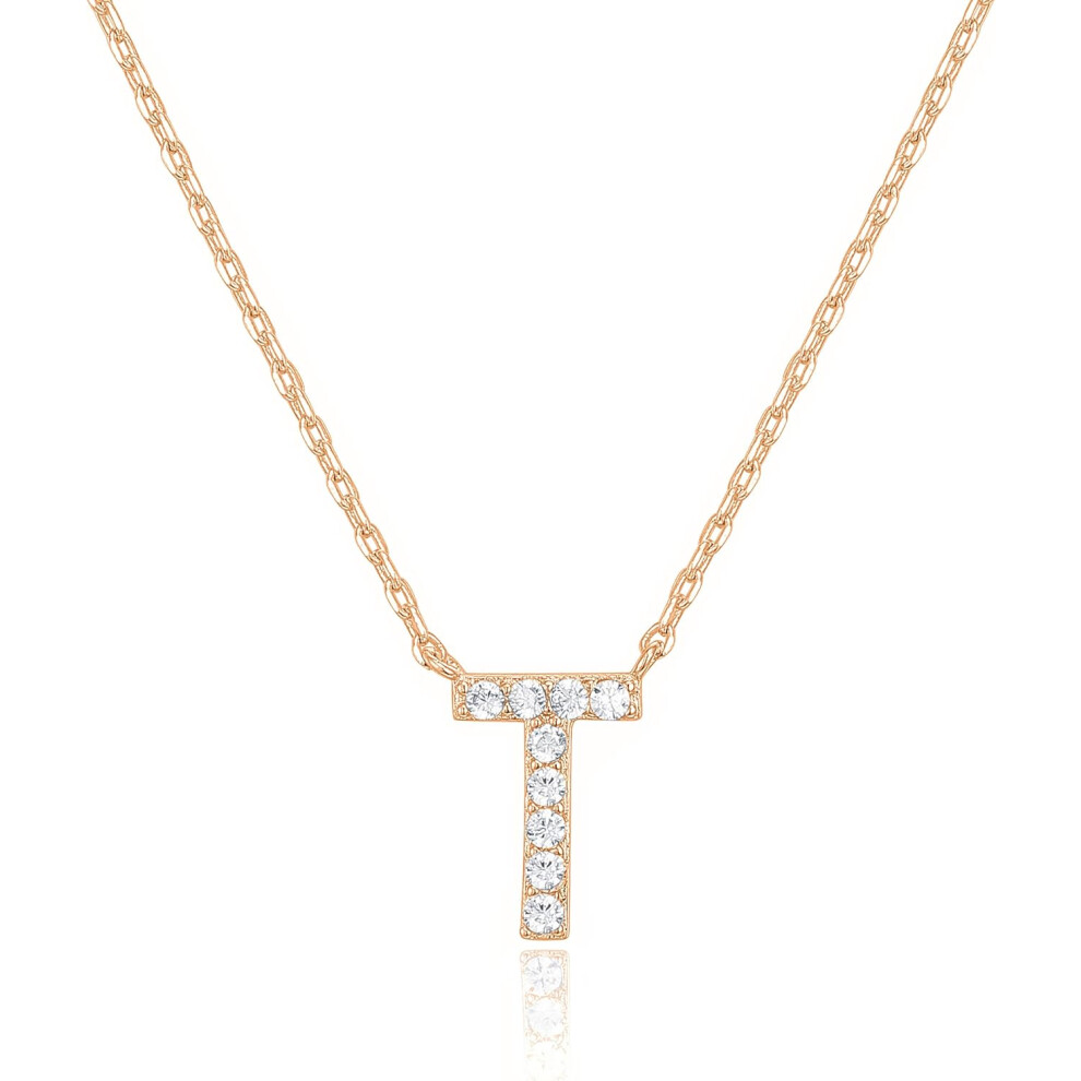 (Rose Gold, - T) HKEDES 14K White Gold Plated Cubic Zirconia Initial Necklace | Letter Dainty Necklaces for Women