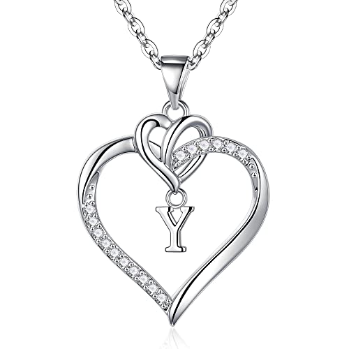 TINGN Heart Initial Necklaces for Women Teen Girls, Dainty Heart Initial Y Pendant Necklace 14K White Gold Plated Heart Necklaces for Girlfriend Jewelry for Women Teen Girls Gifts for Mom Women