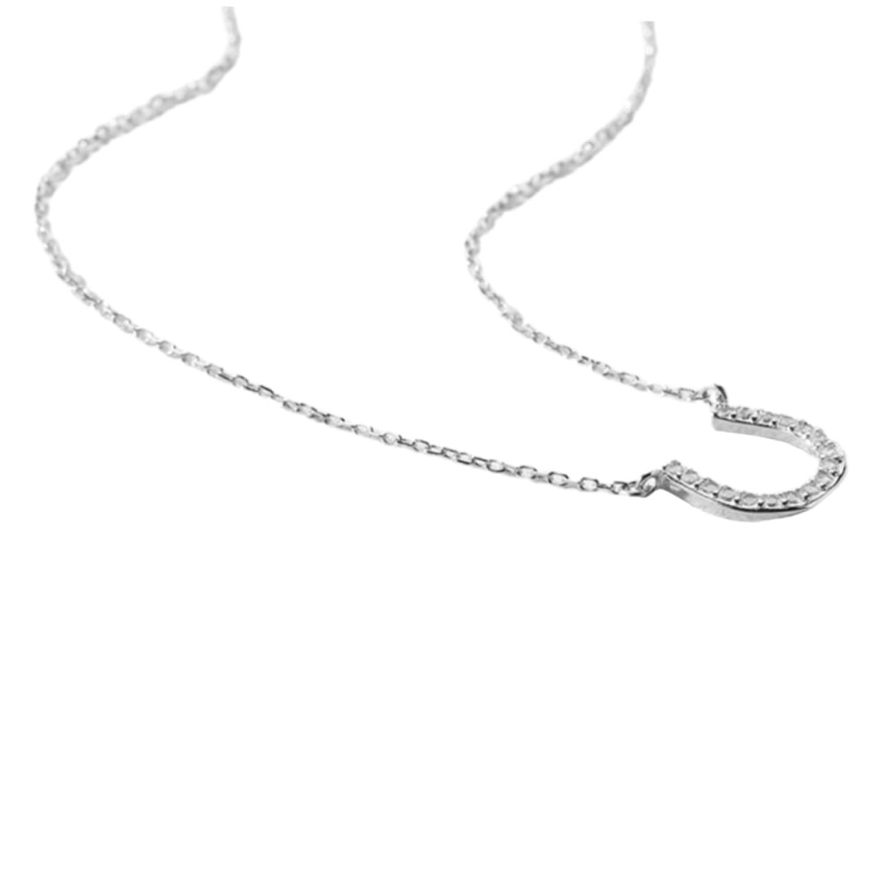 White gold ladies' horseshoe necklaces, elegant short pendant fashion accessory.
