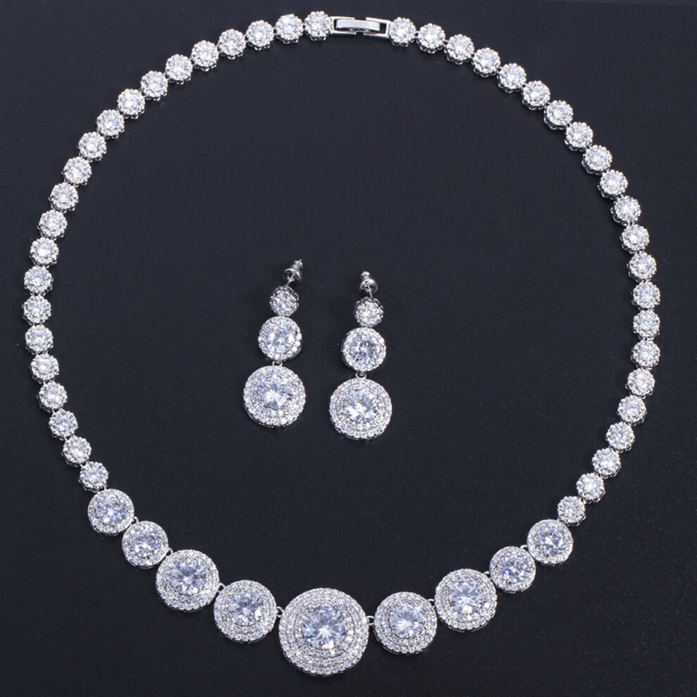 Jewelry Sets with Micro-Pavé, Round Zirconia, Necklaces and Earrings for Women in White Gold Color