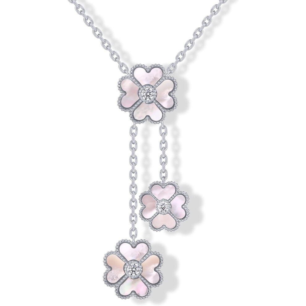 (White Gold, Lariat - Mother of Pearl) 14K Gold Plated Clover Necklaces for Women - Lucky Four Leaf Clover Necklace Pendant