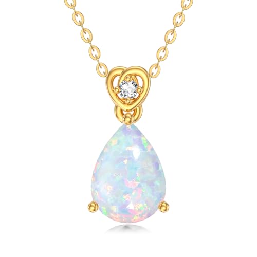 14 Carat Gold Pear Opal Necklace with Diamond for Women 2Ct Teardrop Birthstone Pendant Anniversary Birthday Mother's Day Christmas Necklaces for Her(I2-I3 Clarity-white opal