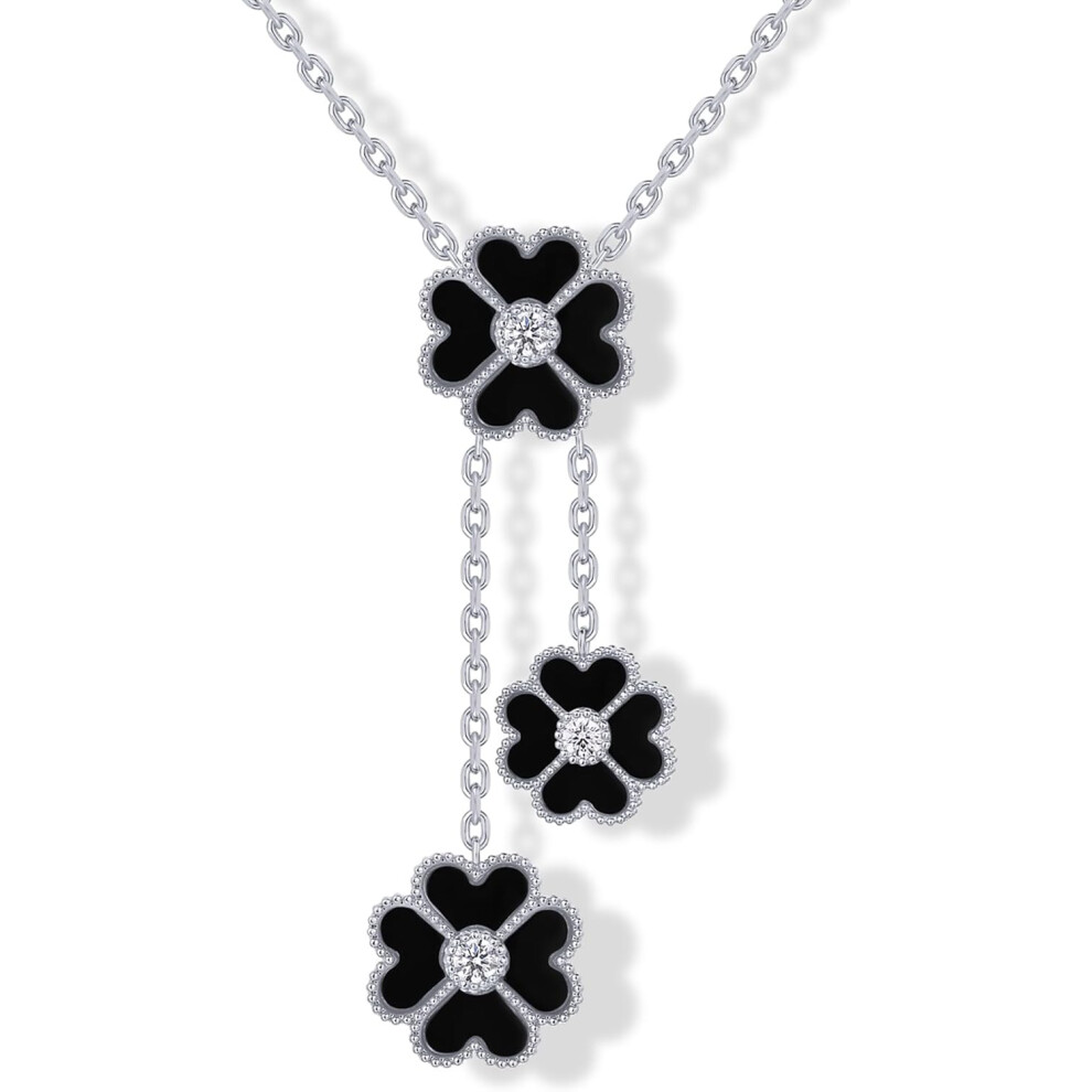 (White Gold, Lariat - Black Onyx) 14K Gold Plated Clover Necklaces for Women - Lucky Four Leaf Clover Necklace Pendant