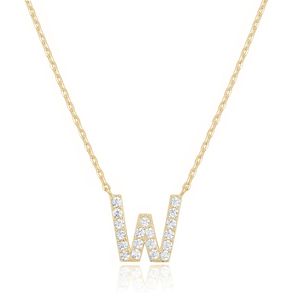 (Yellow Gold, - W) HKEDES 14K White Gold Plated Cubic Zirconia Initial Necklace | Letter Dainty Necklaces for Women